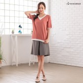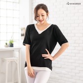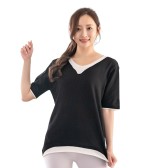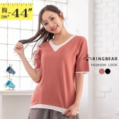 假二件--舒適簡單假兩件素面拼接V領短袖針織上衣(黑.紅XL-2L)-U641眼圈熊中大尺碼