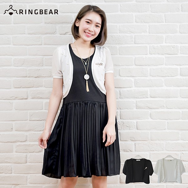 韓版--超修飾透膚釘珠附別針短版小外套(白.黑XL-5L)-J287眼圈熊中大尺碼◎