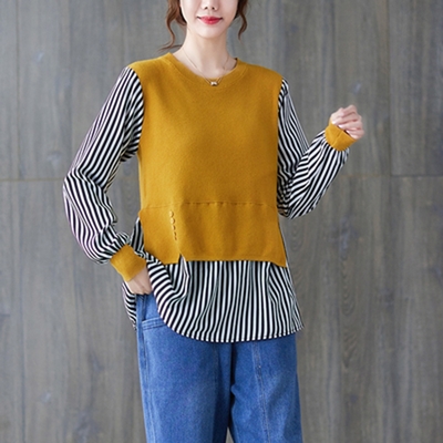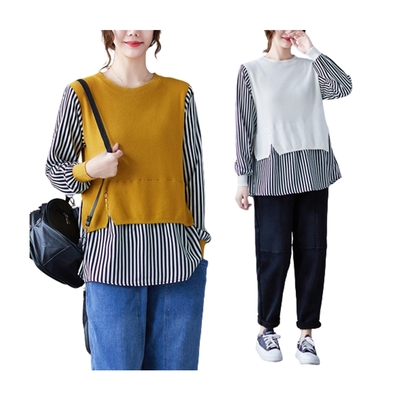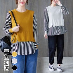 【韓國K.W.】KOREA空運自然造型羊絨背心假二件式上衣