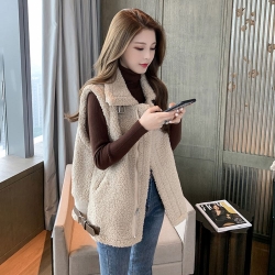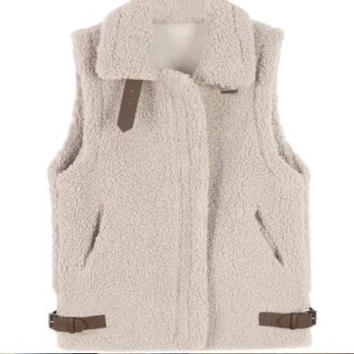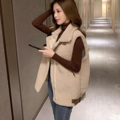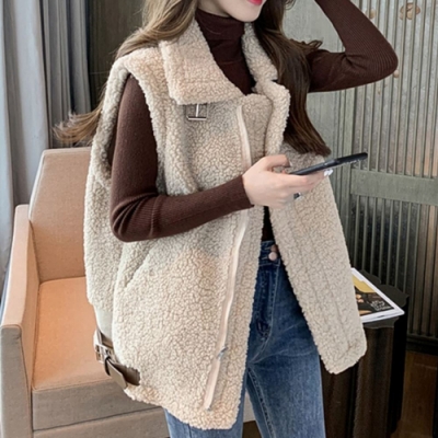MOCO羊羔毛立領側口袋皮帶造型加厚坎肩無袖毛毛保暖背心L~4XL