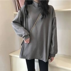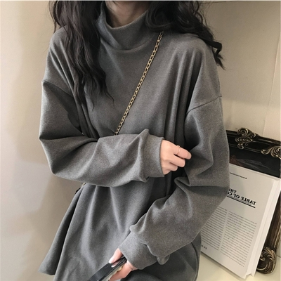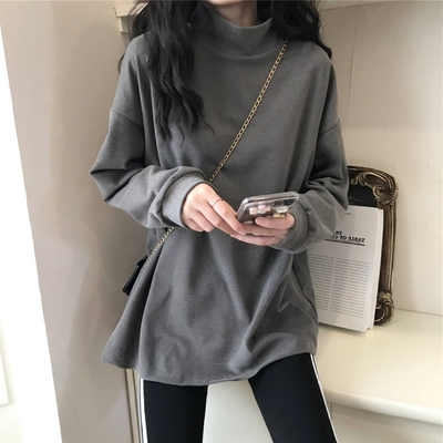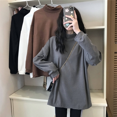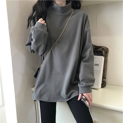 中大尺碼素色高領雙面絨加厚保暖內搭寬鬆上衣L~4L-Ballet Dolly