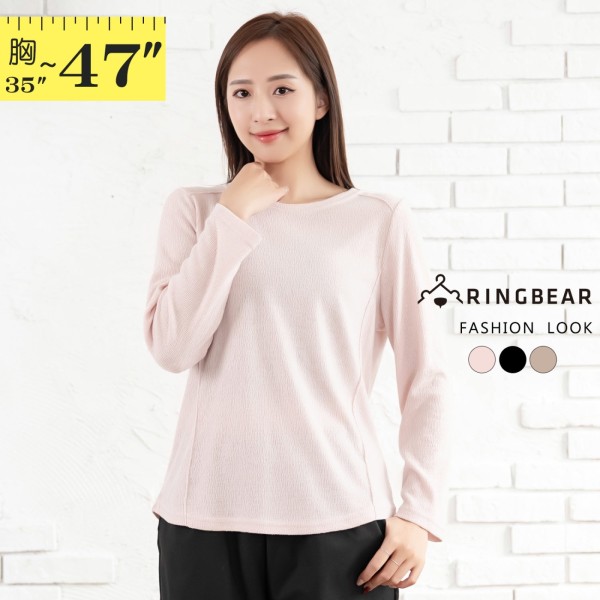 商店加大尺碼--氣質肌理感彈力針織紋顯瘦公主線長袖上衣(黑.粉.卡其L-3L)-X681眼圈熊中大尺碼