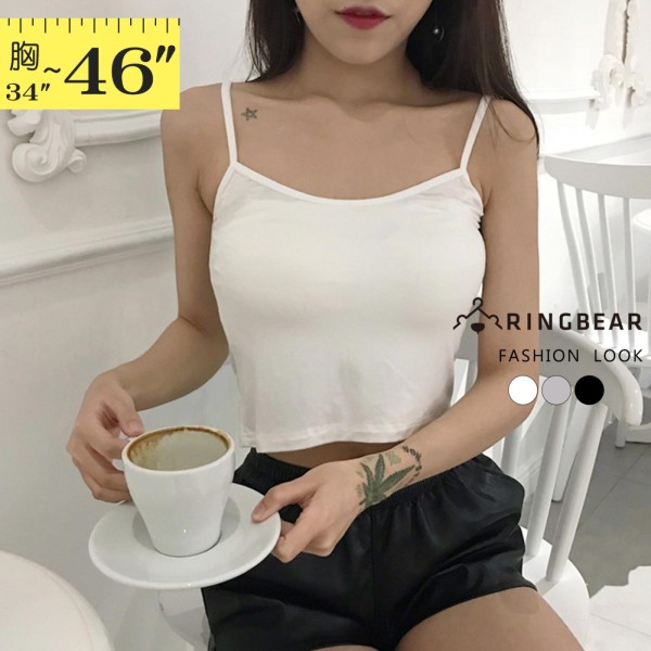 小可愛--舒適百搭修身莫代爾棉短版細肩帶素色背心(白.黑.灰L-2L)-U582眼圈熊中大尺碼