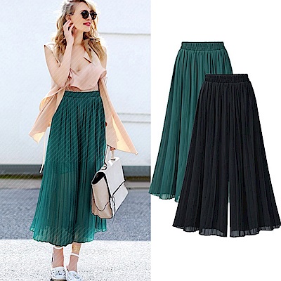 MOCO素色鬆緊腰百摺雪紡褲裙闊腿褲裙XL~4L
