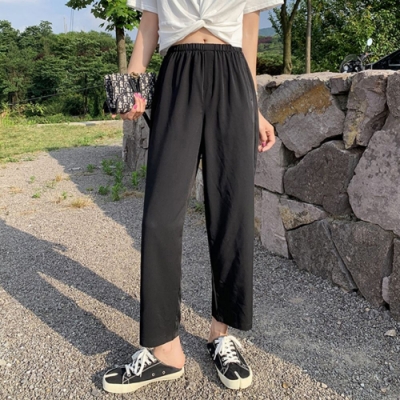 MOCO黑色鬆緊腰滑料直筒寬褲修飾大腿闊腿褲L~4XL