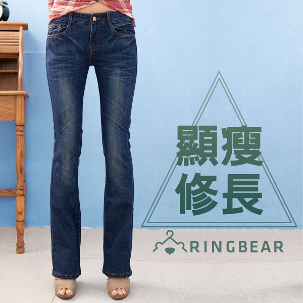 顯瘦--再創窈窕細身曲線-復古黑藍色瘦排骨中腰合身小喇叭牛仔褲(S-7L)-N88眼圈熊中大尺碼