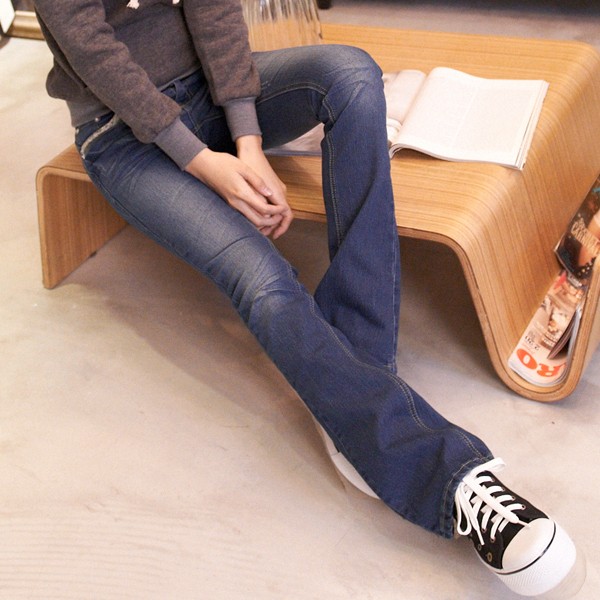 商店顯瘦--再創窈窕細身曲線-復古黑藍色瘦排骨中腰合身小喇叭牛仔褲(S-7L)-N88眼圈熊中大尺碼
