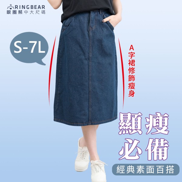 牛仔裙--經典素面撞色車邊裙襬開衩牛仔長裙(S-7L)-Q82眼圈熊中大尺碼