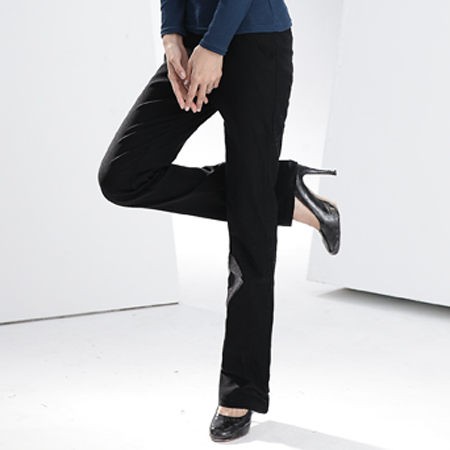 喇叭褲--都會OL必敗款激修身顯瘦寬褲頭黑色素面中腰微喇叭西裝褲(黑S-7L)-P06眼圈熊中大尺碼