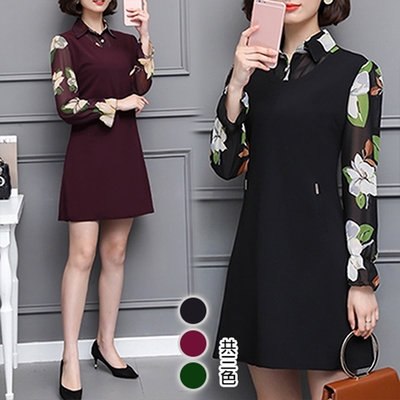 【韓國K.W.】現貨回眸一笑雪紡拼接秀麗洋裝