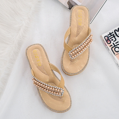 山打努SANDARU-拖鞋 斜方頭人字夾腳扁跟拖鞋-米