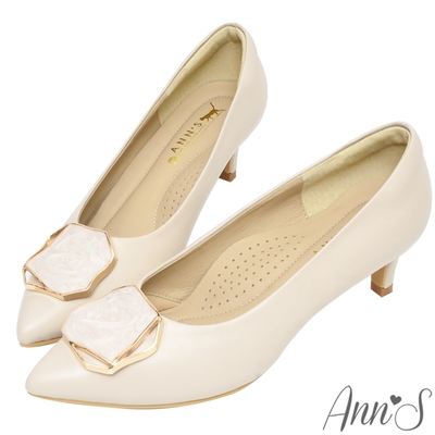 Ann’S渲染大理石扣飾-小羊皮全真皮低跟尖頭鞋-4cm-米白
