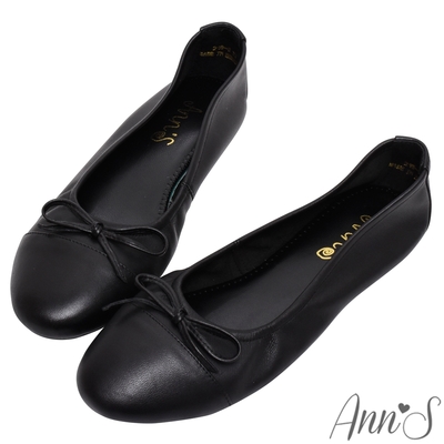 Ann’S輕膚系列-優雅小香風全羊皮平底娃娃鞋-黑