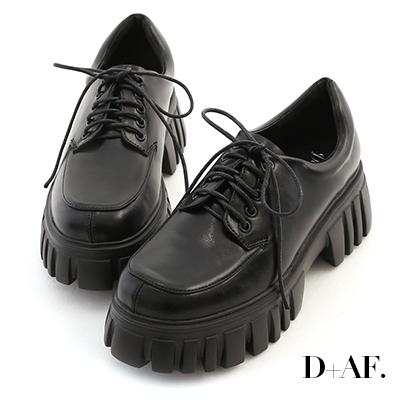 D+AF 摩登少女.輕量鋸齒底綁帶德比鞋*黑