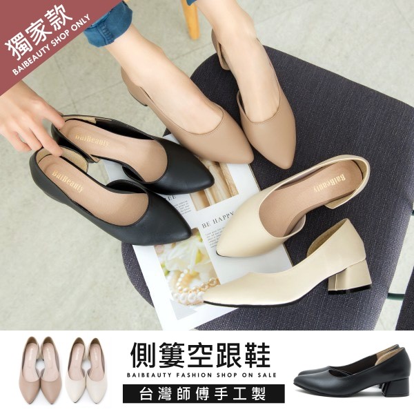 DONGCHICHI 穿脫好方便 尖頭 OL 跟鞋 6cm 拌帶 高跟鞋 米白色 F021