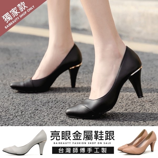 商店尖頭鞋.訂製款.MIT優雅亮眼拼接金屬高跟包鞋.白鳥麗子