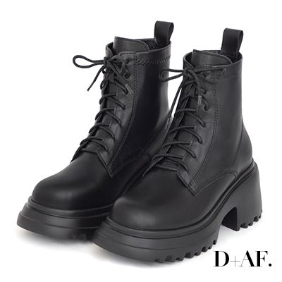 D+AF【Lisa同款】女團風輕量厚底綁帶短靴 黑