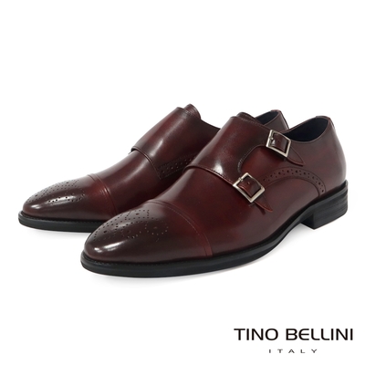 TINO BELLINI 男款 復刻擦色雕花雙釦孟克紳士鞋