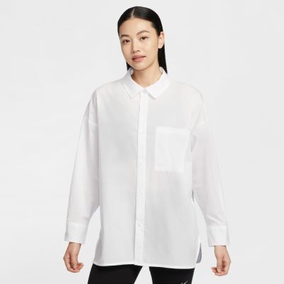 NIKE 耐吉 白襯衫 女 短袖上衣 襯衫 白色系-AS W NSW NK CHLL PPLN LS BTN T-HJ0716100$1,4008折