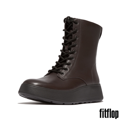 【FitFlop】F-MODE 皮革繫帶厚底短靴-女(巧克力棕)