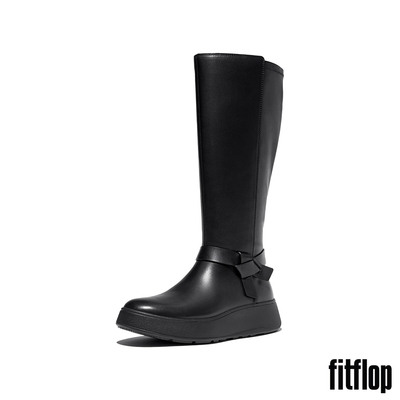 【FitFlop】F-MODE 紐結造型厚底彈性高筒靴-女(黑色)