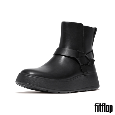 【FitFlop】F-MODE 紐結造型皮革厚底切爾西靴-女(黑色)