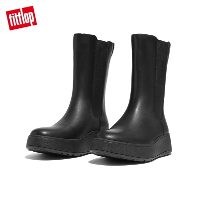 【FitFlop】F-MODE LEATHER FLATFORM HIGH CHELSEA BOOTS全皮革厚底中筒靴-女(靓黑色)