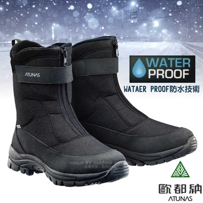 【ATUNAS 歐都納 男 雪地漫步防水中筒靴《黑》】A1GCFF17M/中筒雪靴/刷毛雪靴/保暖防水鞋