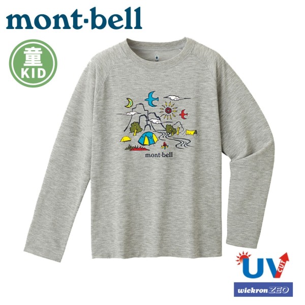 【Mont-Bell 日本 童 WIC.T L/S CAMPING 長袖排汗T恤 《麻灰》】1114259/排汗衣/圓領衫