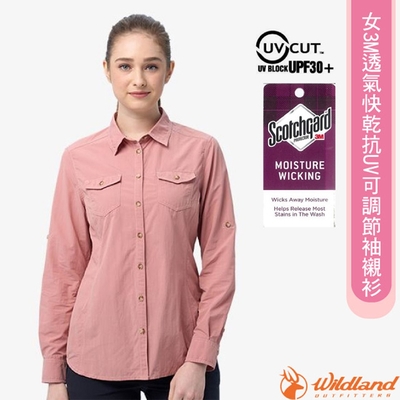 荒野 WildLand 女 3M透氣快乾抗UV可調節袖襯衫.抗紫外線.透氣快乾_摩曼粉
