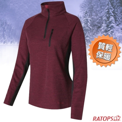 瑞多仕 女款 Thermolite 麻花磨毛長袖保暖POLO衫(袖脇配).休閒衫_DB6059 棗紅色/黑色