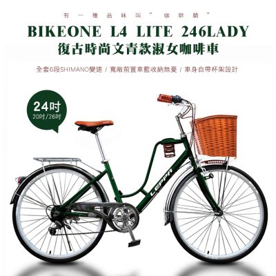 BIKEONE L4 LITE 246LADY 24吋6速 SHIMANO變速 復古時尚菜籃款淑女車咖啡車 低跨點設計都會時尚通勤新寵兒$4,888$5,200