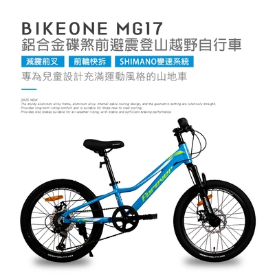 BIKEONE MG17 20吋SHIMANO7速鋁合金碟煞前避震登山越野自行車專為兒童設計充滿運動風格的山地車$4,67585折