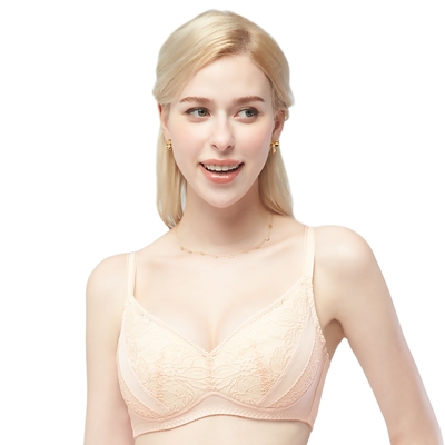 思薇爾 花菲系列B-E罩無鋼圈蕾絲包覆女內衣(淡杏色)$390