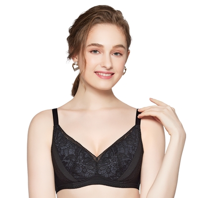 思薇爾 花菲系列B-E罩無鋼圈蕾絲包覆女內衣(黑色)$390
