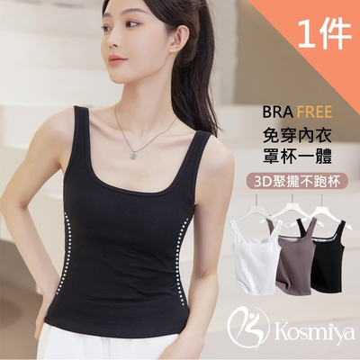 【Kosmiya】1件組 純棉螺紋方領吊帶罩杯背心/Bra Top/無痕背心/無鋼圈/小可愛/內搭背心(3色可選/M-XL)$3558折
