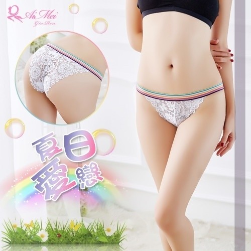 性感內褲 性感三角褲 夏日愛戀 彩紅腰帶拼接蕾絲三角褲
