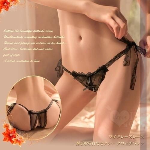 性感內褲 居家內衣褲 女性 寬版睫毛蕾絲兩側綁帶免脫性感開襠褲