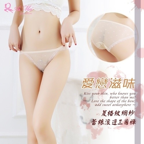 性感內褲 性感三角褲 愛戀滋味 菱格紋網紗蕾絲滾邊三角褲