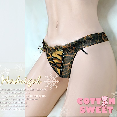 丁字褲 狂野魅力 豹紋網紗 丁褲 - 黑 棉花甜