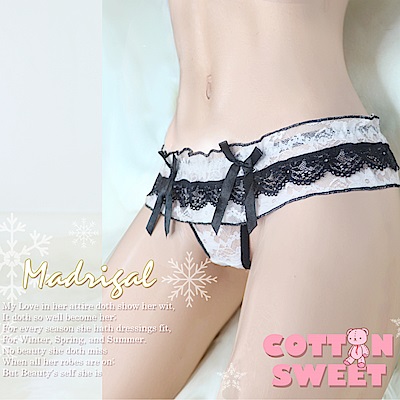 丁字褲 浪漫微甜 網紗蕾絲 丁褲 - 白 棉花甜