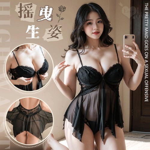 大尺碼專區 【棉花糖女孩】大尺碼情趣睡衣!花蔓蕾絲鋼圈托乳前開襟不規則透紗裙兩件組