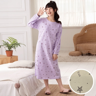 華歌爾睡衣 M-L圓領純棉印花長袖洋裝(黃) TWW40T03YD