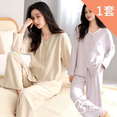 【Kosmiya】1套 棉質輕柔純色長袖睡衣/女睡衣/居家服/兩件式睡衣/成套睡衣(3色可選/均碼/加大碼)$54679折