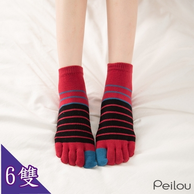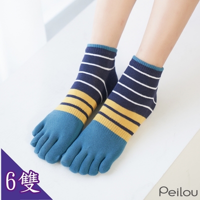 貝柔 柔棉乾爽抑菌五指襪-復古條紋(6雙組)$31279折