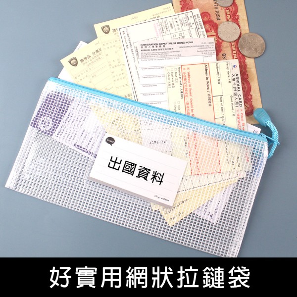 商店珠友 WA-50113 B8電子發票/證件型網狀拉鏈袋(附名片袋)/電子發票/網格/卡片票據/多功能收納/防潑水