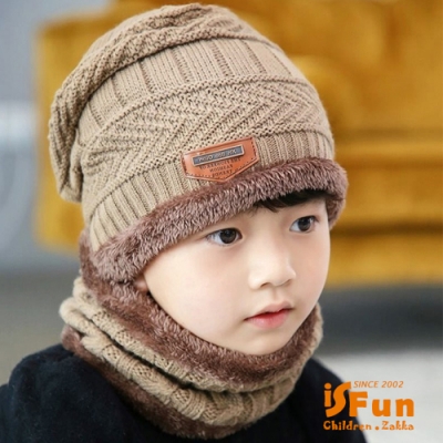 iSFun 仿羊絨刷毛 針織彈性兒童保暖毛線帽+脖圍 2色可選$469