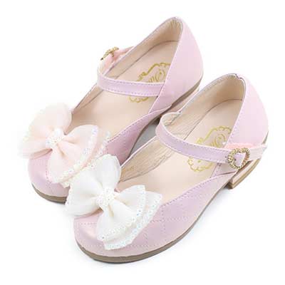 Swan天鵝童鞋-閃亮水鑽菱格紋小高跟公主鞋3868-粉