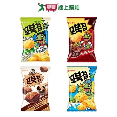 好麗友烏龜玉米脆片系列(原味/巧克力/海苔/芥末牛排)(80G/包)【愛買】