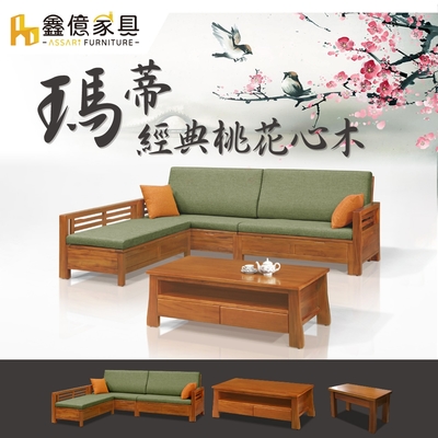 ASSARI-瑪蒂桃花心木L型沙發+大茶几(含2椅凳)
